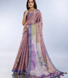 Peach printed art silk designer pallu saree