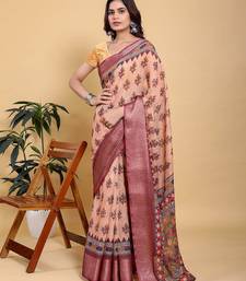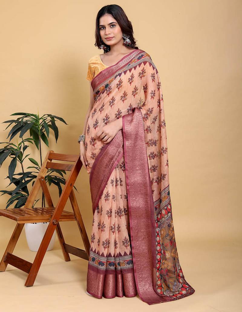 Peach printed art silk designer pallu saree
