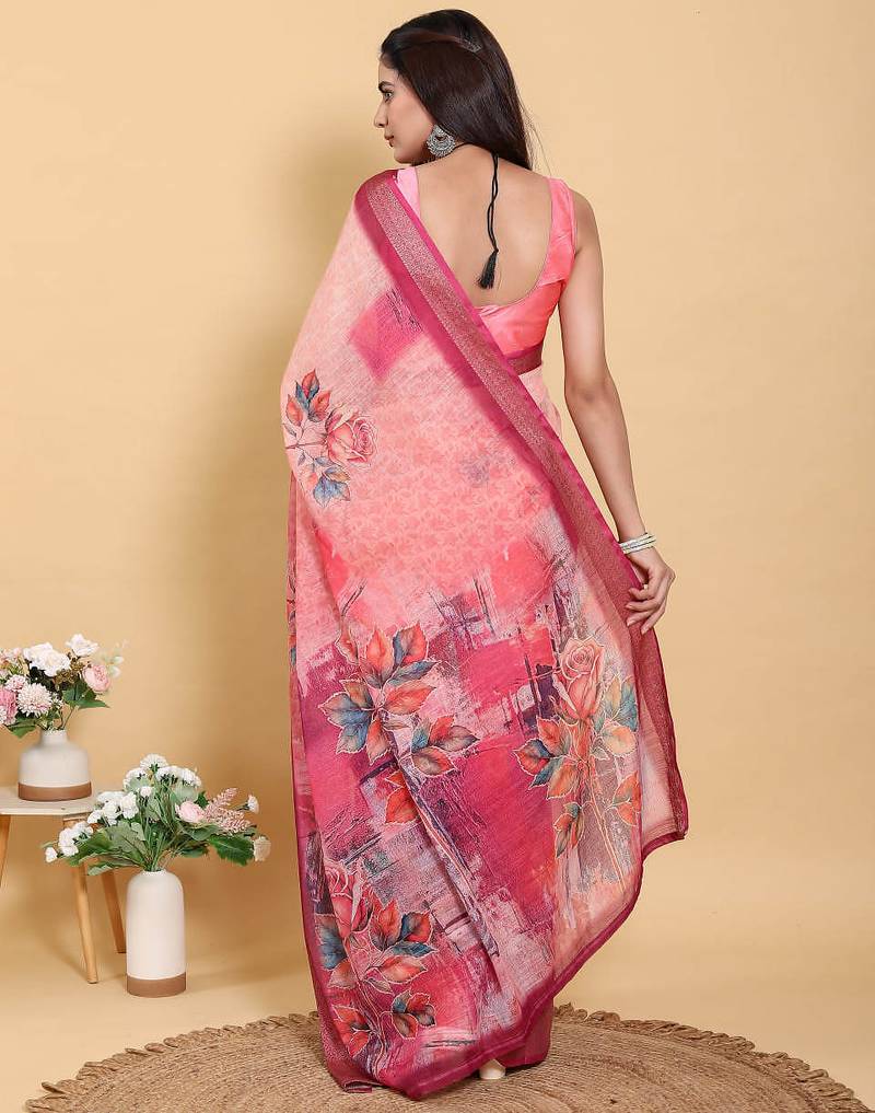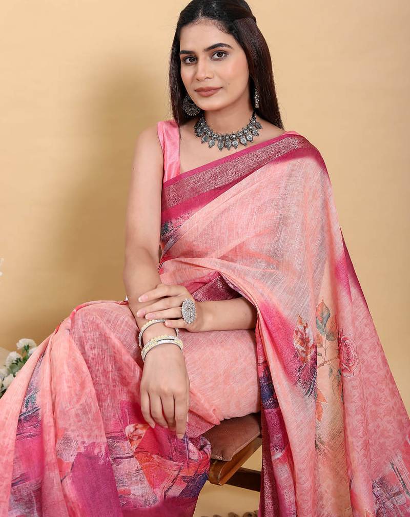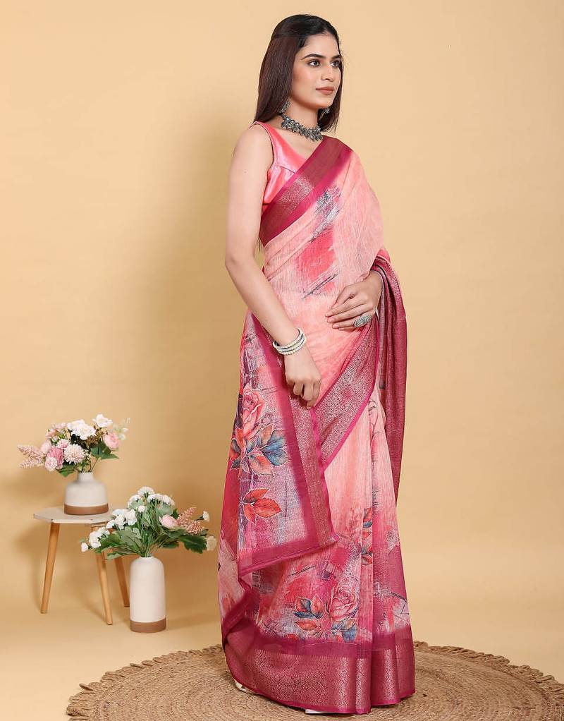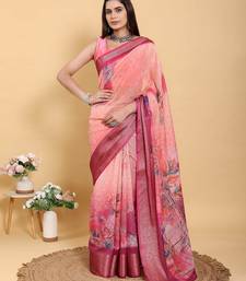 Peach printed art silk designer pallu saree