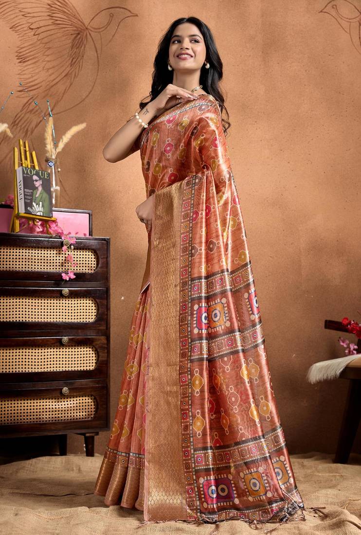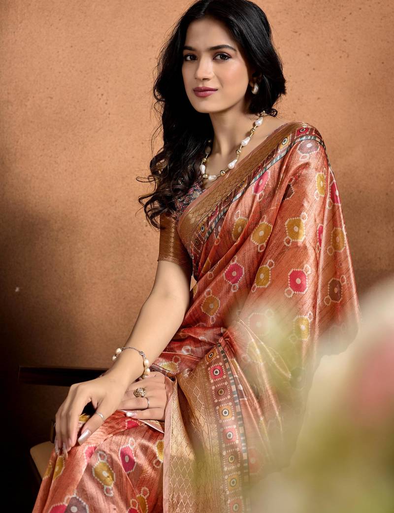 | Product Name | Peach Printed Art Silk Designer Pallu Saree | |