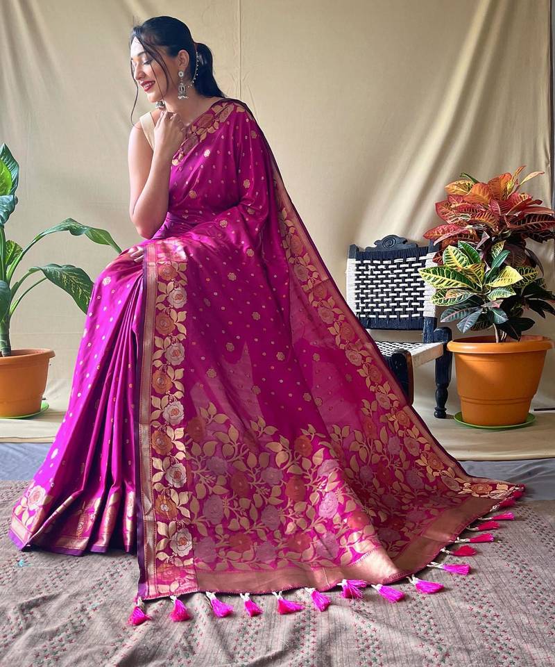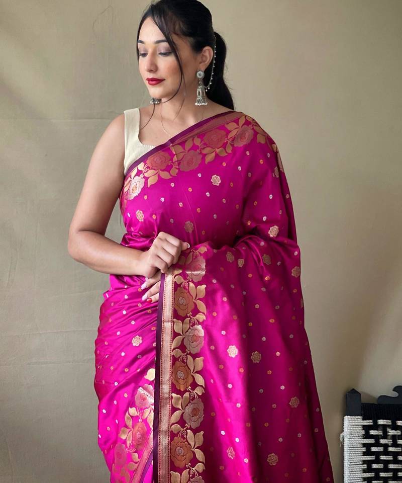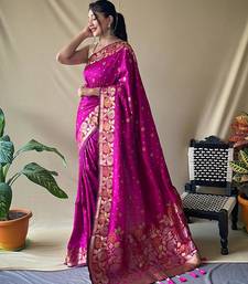 Pink art silk woven saree