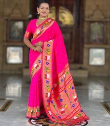Pink elegant art silk woven saree with rich zari border