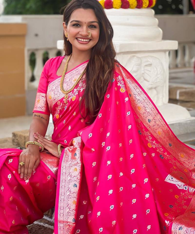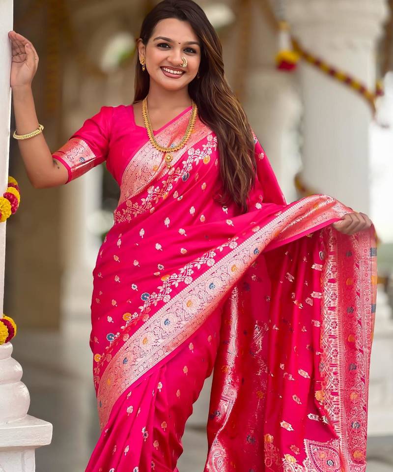 | Product Name | Pink Elegant Art Silk Woven Saree With Rich Zari Border | |