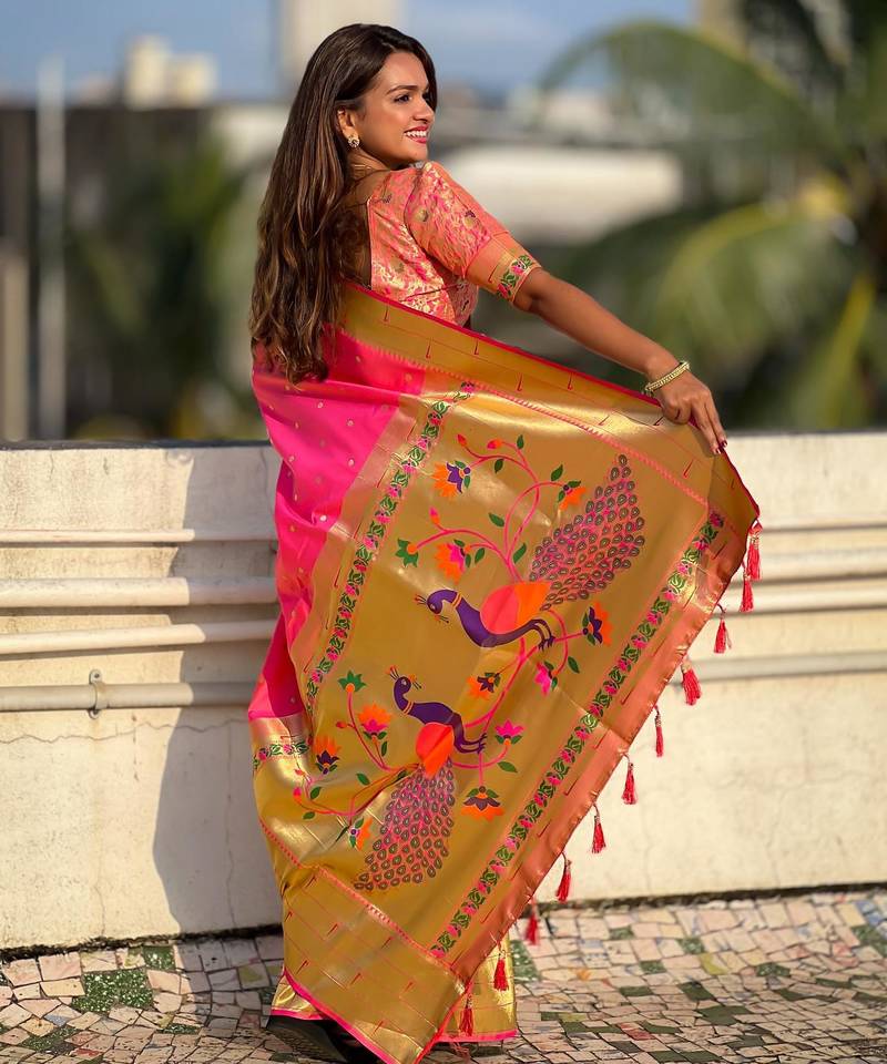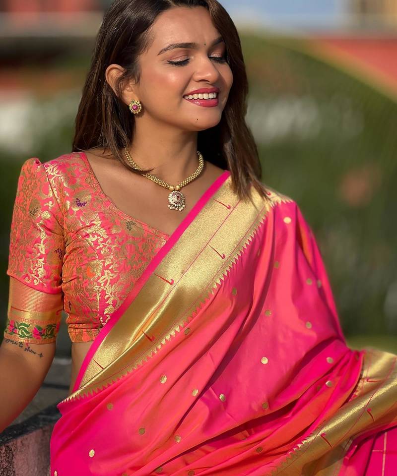 | Product Description | Soft Paithani Silk Saree With Zari Weawing Motifs Design And Meenakari Weawing Rich Pallu With Meenakari Weawing Border & Tassels Attached At Pallu End. Blouse : Enrich Silk Weawing Contrast Blouse Piece With Sleeve Border , |