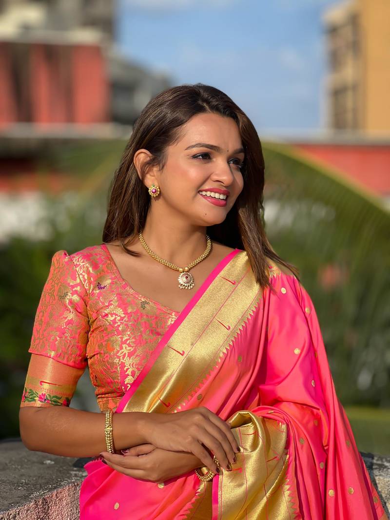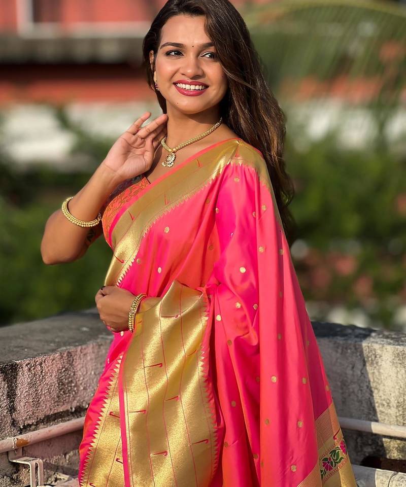 | Product Name | Pink Elegant Art Silk Woven Saree With Rich Zari Border | |