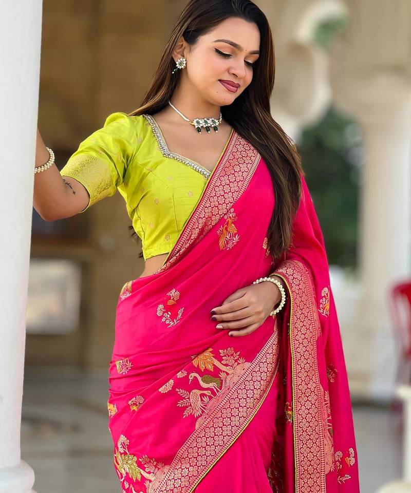 Pink elegant art silk woven saree with rich zari border