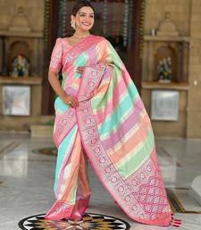 Pink elegant art silk woven saree with rich zari border