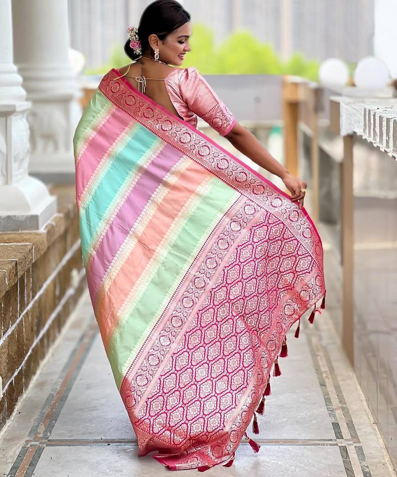 | Product Name | Pink Elegant Art Silk Woven Saree With Rich Zari Border | |