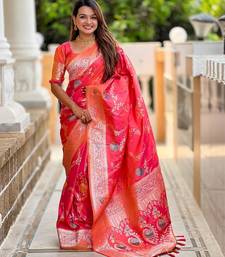 Pink elegant art silk woven saree with rich zari border