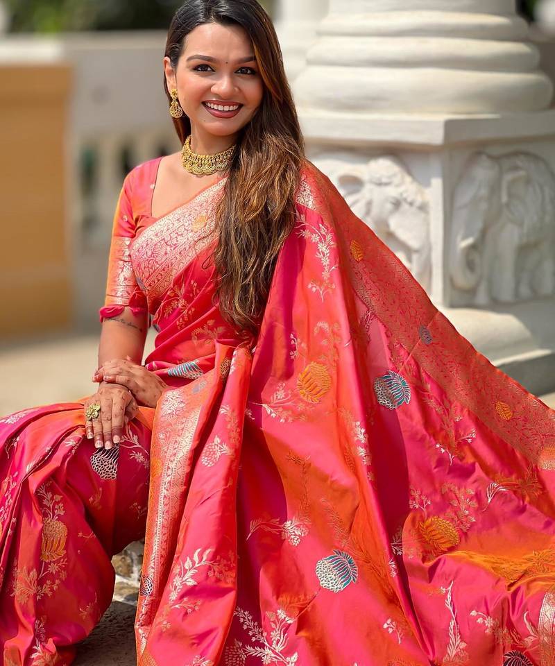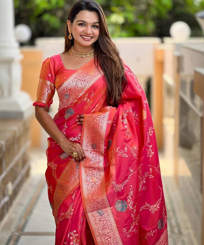 | Product Name | Pink Elegant Art Silk Woven Saree With Rich Zari Border | |