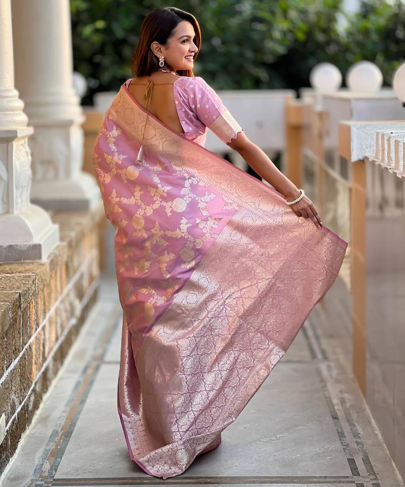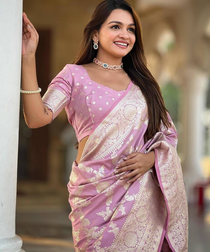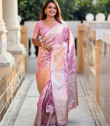 Pink elegant art silk woven saree with rich zari border