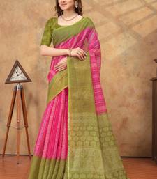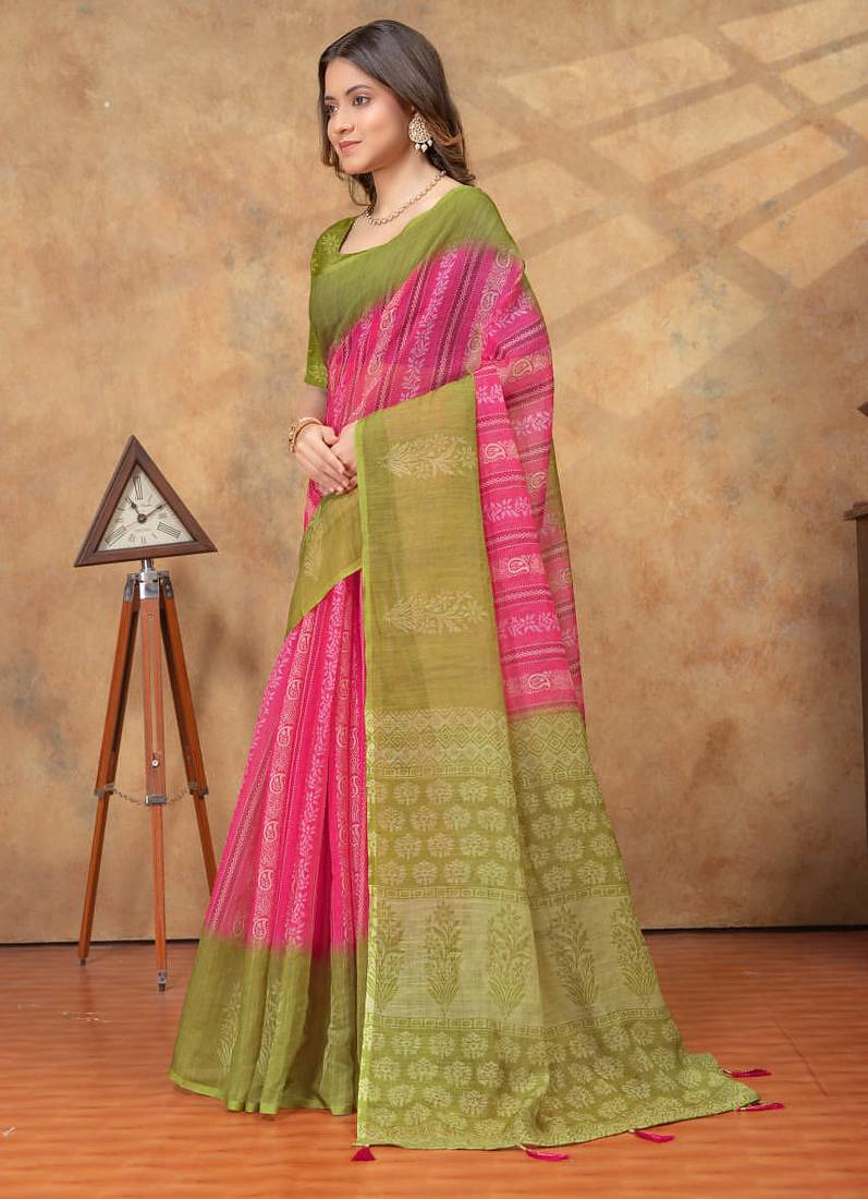 Pink printed art silk designer pallu saree