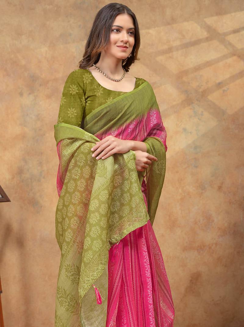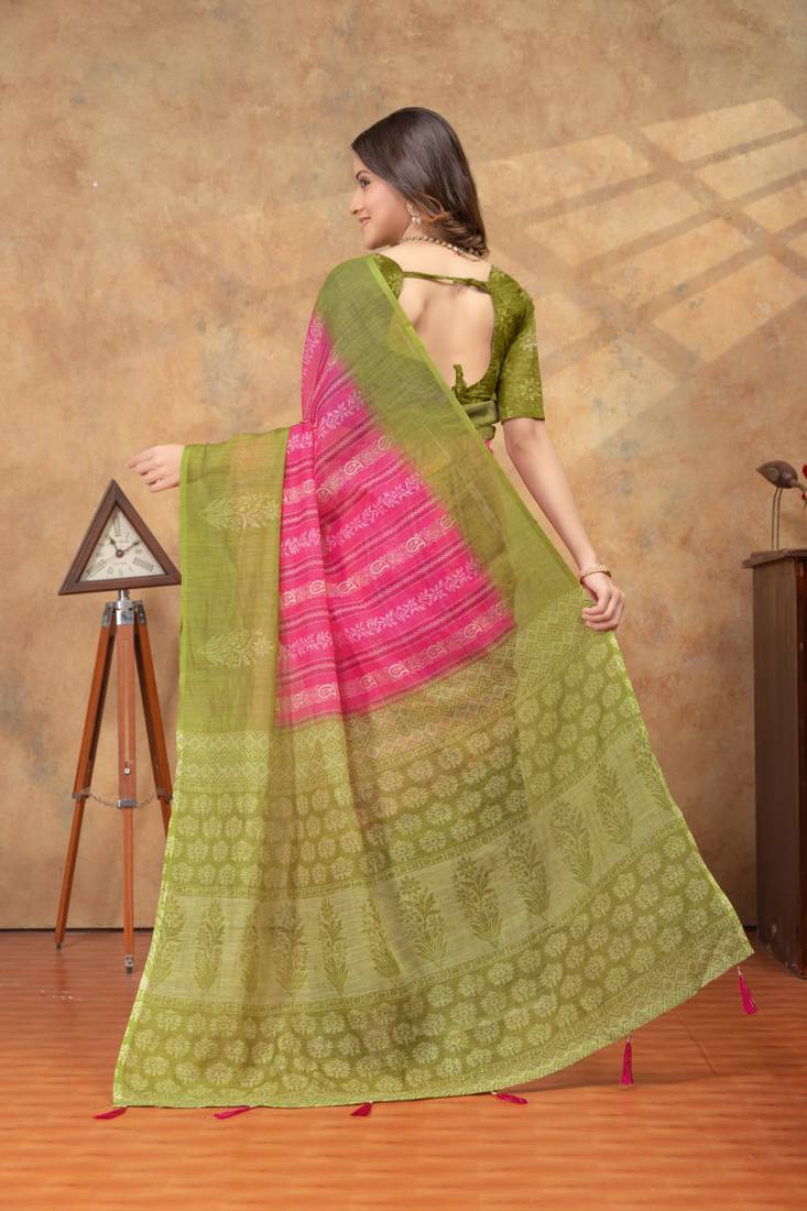 | Product Name | Pink Printed Art Silk Designer Pallu Saree | |