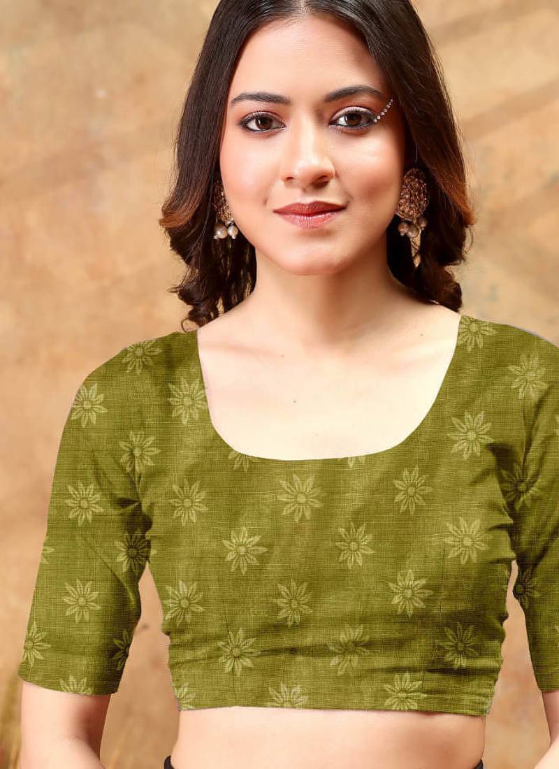 | • | Blouse | : | Color- Mehendi / Fabric- Art Silk |