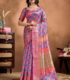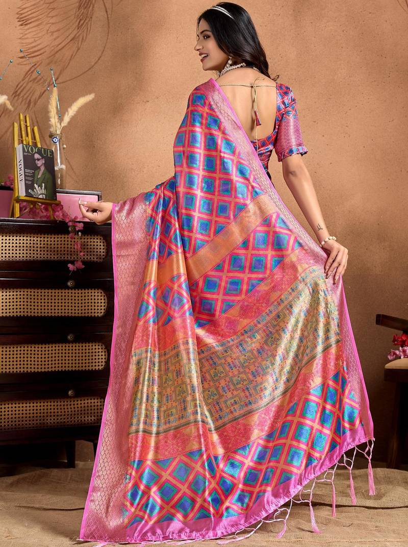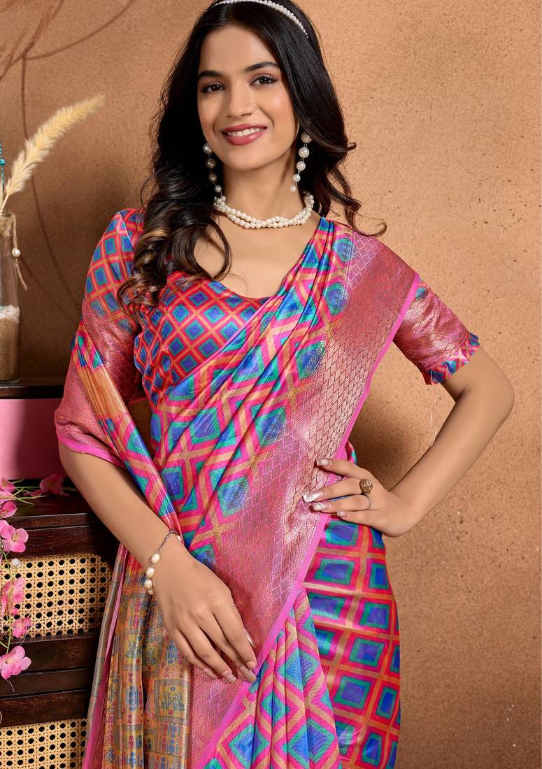 Pink printed art silk designer pallu saree