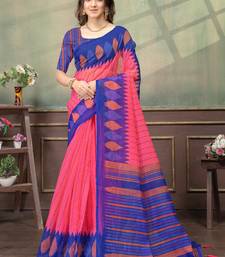 Pink printed art silk designer pallu saree