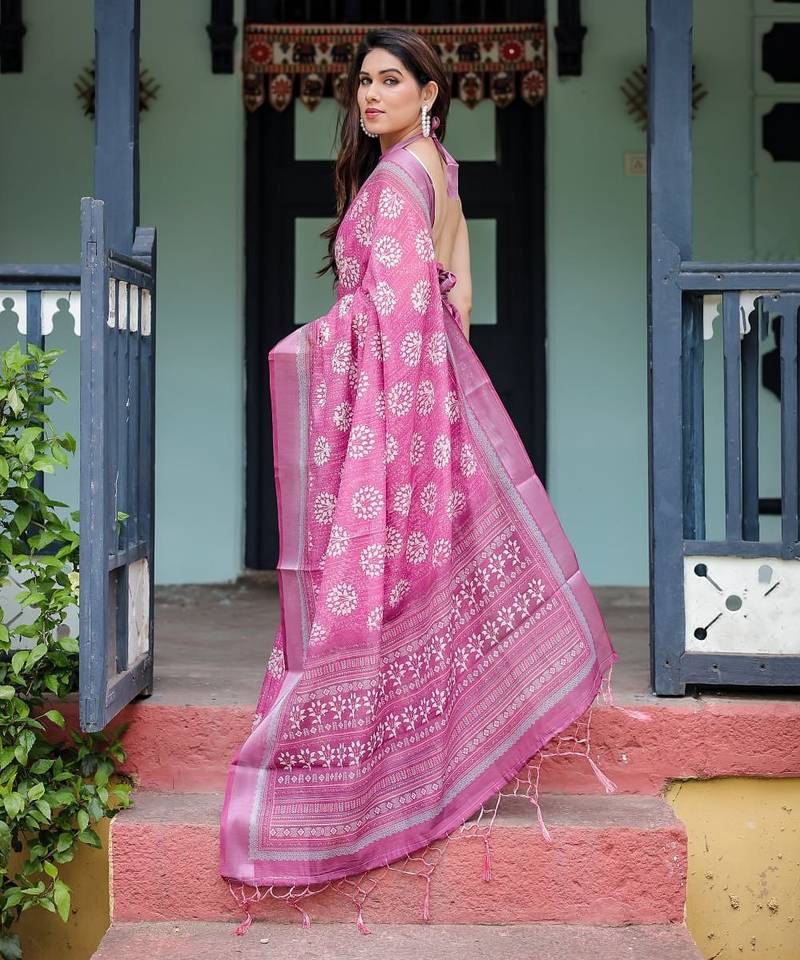 | Product Name | Pink Printed Art Silk Designer Pallu Saree | |