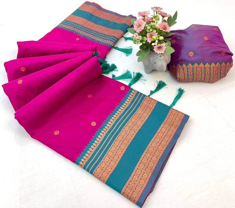 | Product Name | Pink Soft Silk Saree With Narayan Border & Dual Zari Motifs | |