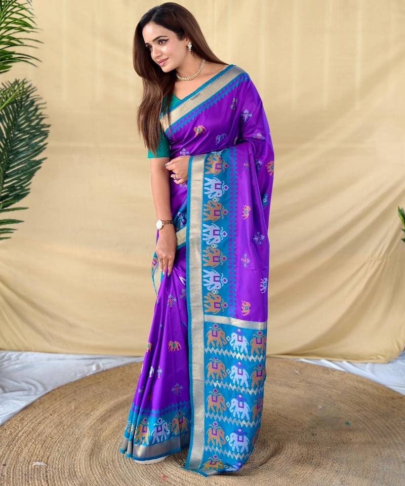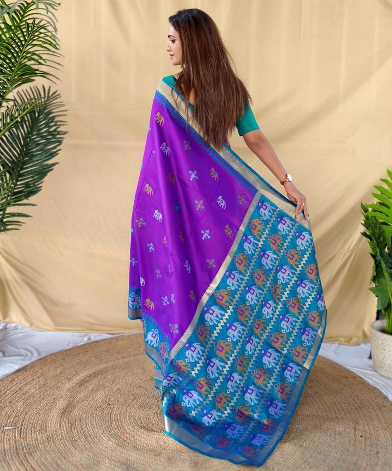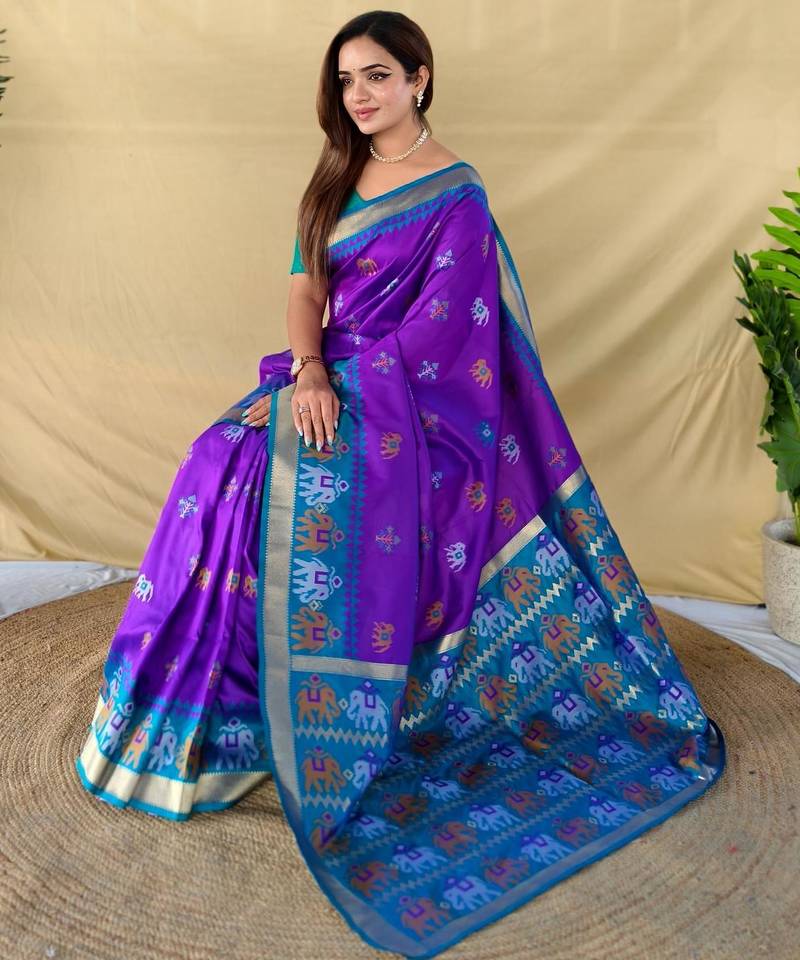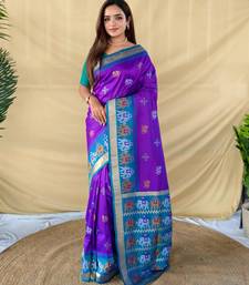 Purple art silk woven saree