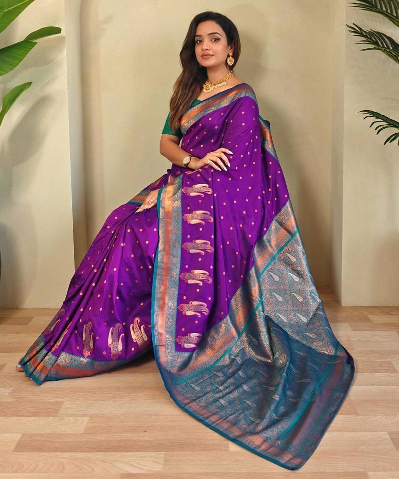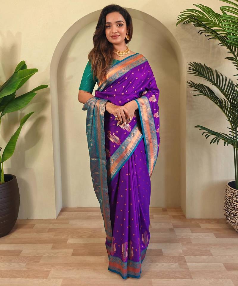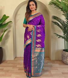 Purple art silk woven saree