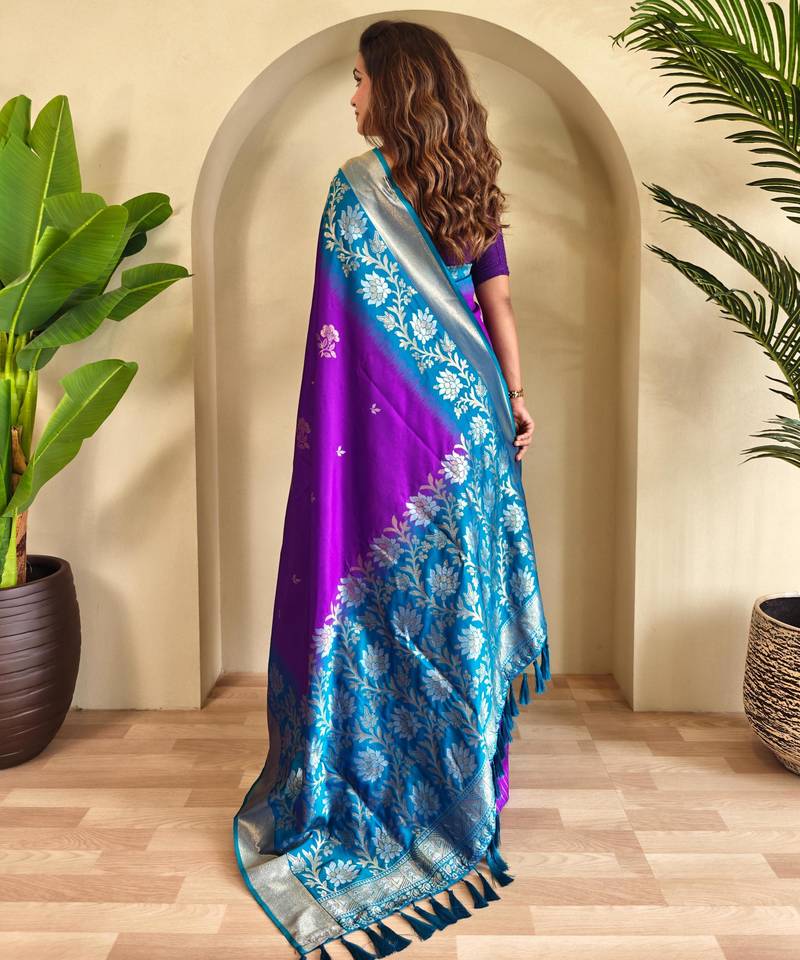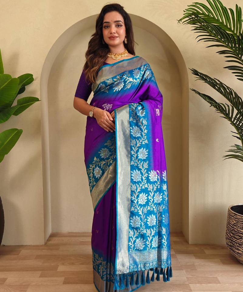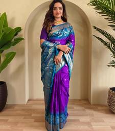 Purple art silk woven saree