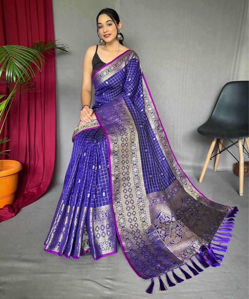 Purple art silk woven saree