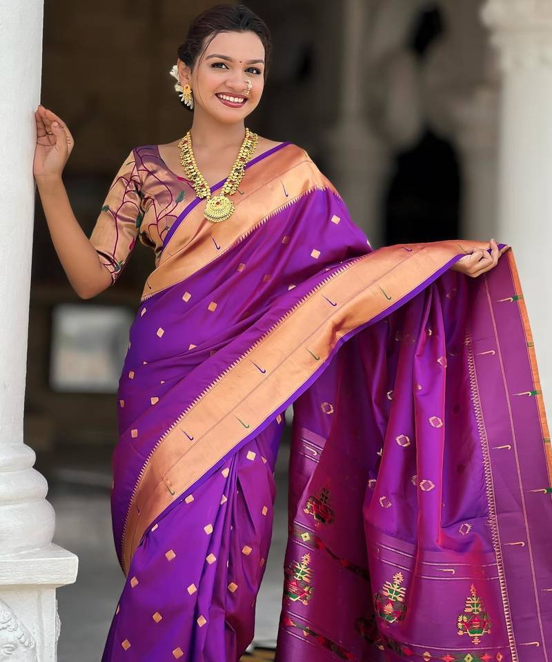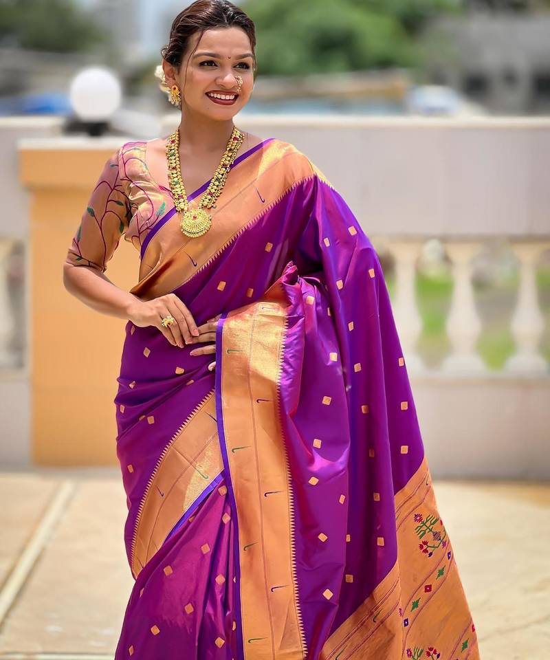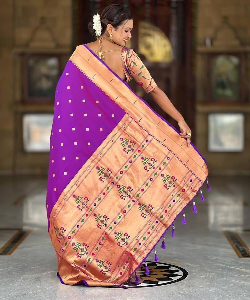 | Product Description | Soft Paithani Silk Saree With Zari Weawing Motifs Design And Meenakari Weawing Rich Pallu With Meenakari Weawing Double Munia Border & Tassels Attached At Pallu End. Blouse : Enrich Silk Weawing Blouse Piece With Sleeve Border , |