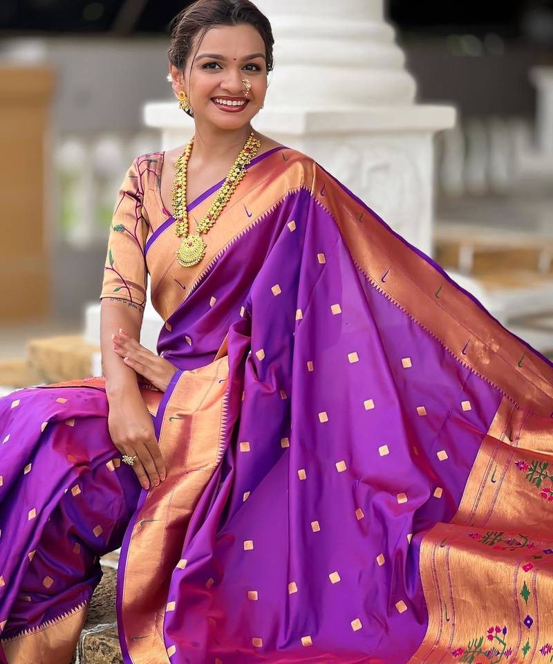 | Product Name | Purple Elegant Art Silk Woven Saree With Rich Zari Border | |
