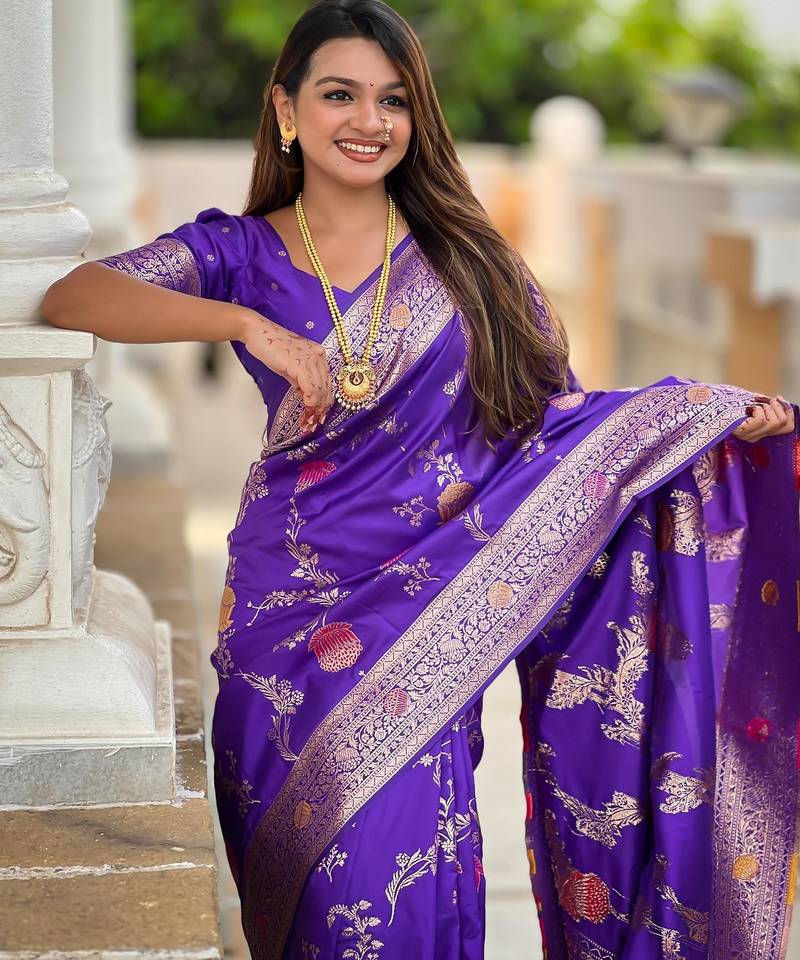 | Product Name | Purple Elegant Art Silk Woven Saree With Rich Zari Border | |