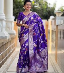 Purple elegant art silk woven saree with rich zari border