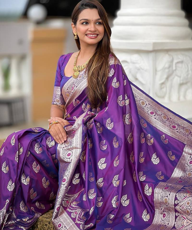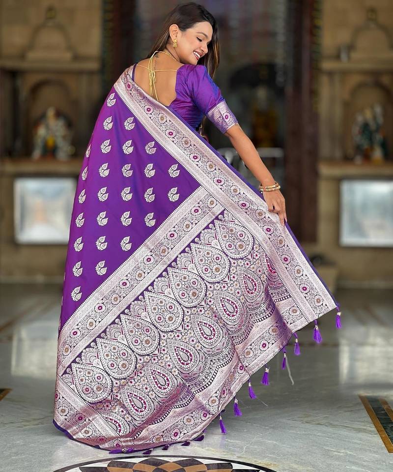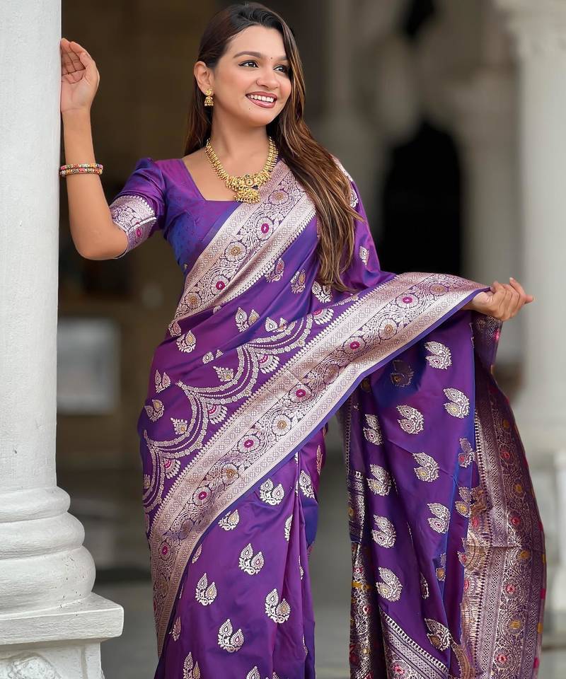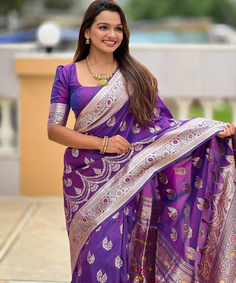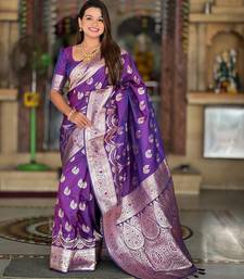 Purple elegant art silk woven saree with rich zari border