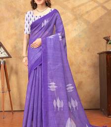 Purple printed art silk designer pallu saree