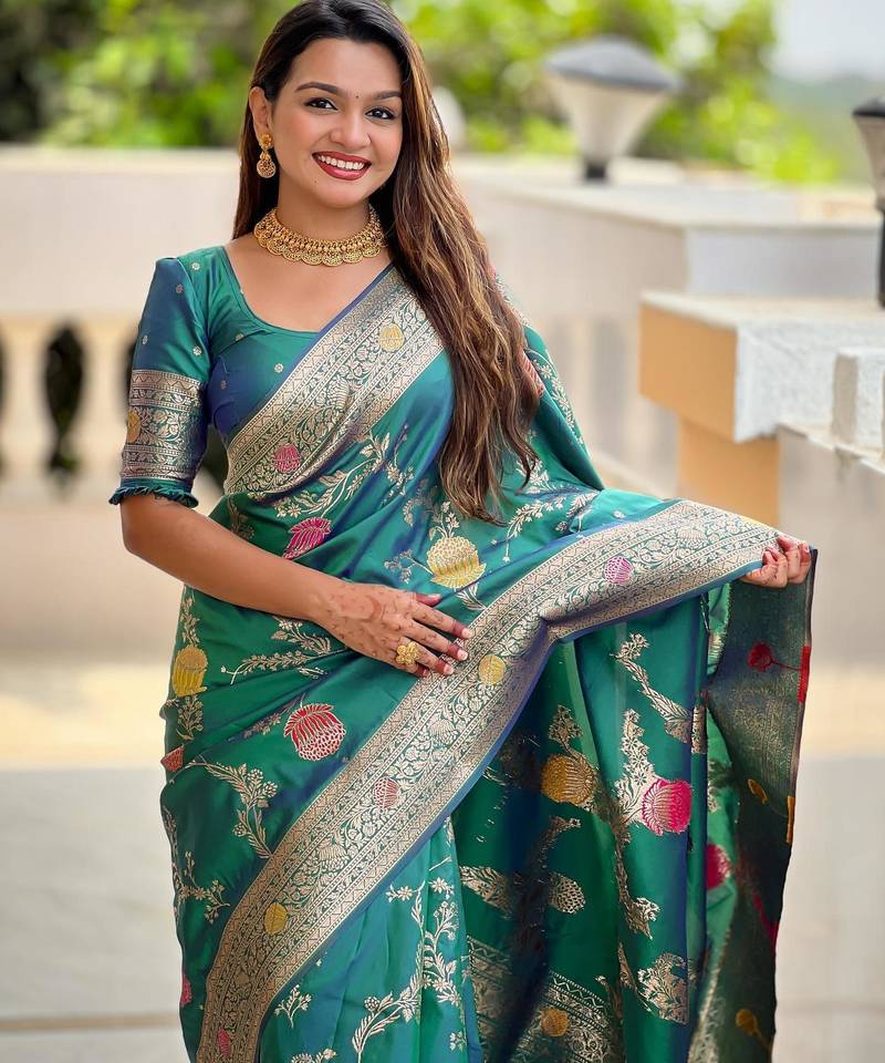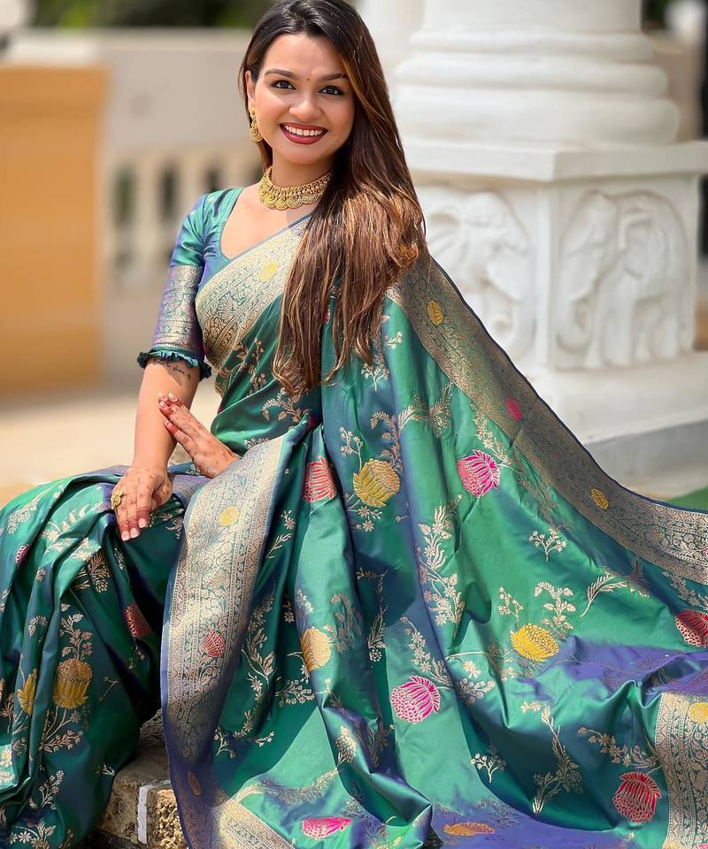 | Product Name | Rama Green Elegant Art Silk Woven Saree With Rich Zari Border | |