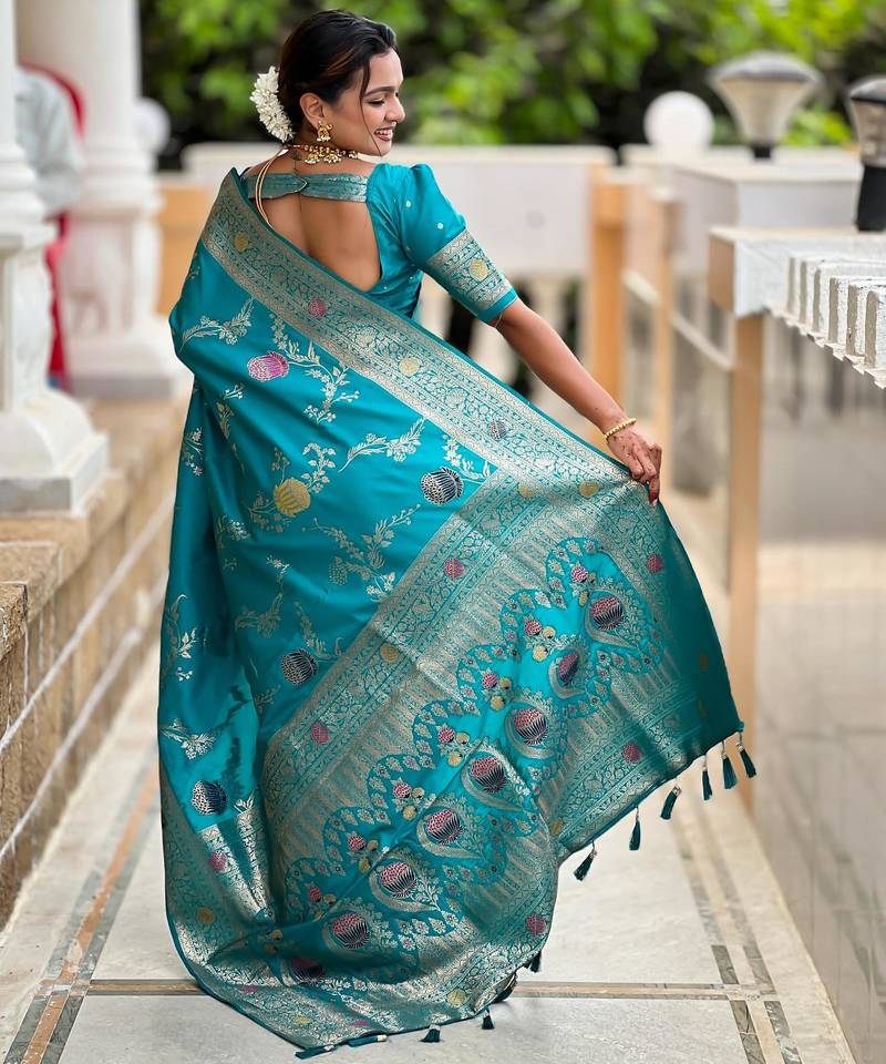 | Product Name | Rama Green Elegant Art Silk Woven Saree With Rich Zari Border | |