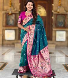 Rama green elegant art silk woven saree with rich zari border