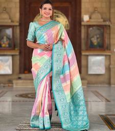 Rama green elegant art silk woven saree with rich zari border