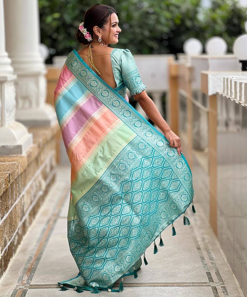 | Product Description | Soft Silk Saree With Zari Weaving Meenakari Design All Over The Saree & Zari Weawing Contrast Rich Pallu With Cotrast Weawing Border & Tessels Attached At Pallu End. Blouse : Soft Silk Weawing Contrast Blouse Piece |