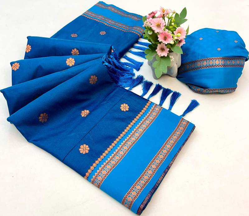 | Product Description | This Premium Saree Features A Stunning Two Tone Fabric Enhanced With Intricate Dual Zari Motifs Across The Body. The Classic Narayan Style Border And Rich Contrast Pallu Give It A Grand Festive Look, Making It Perfect For Celebrations And Traditional Occasions. |