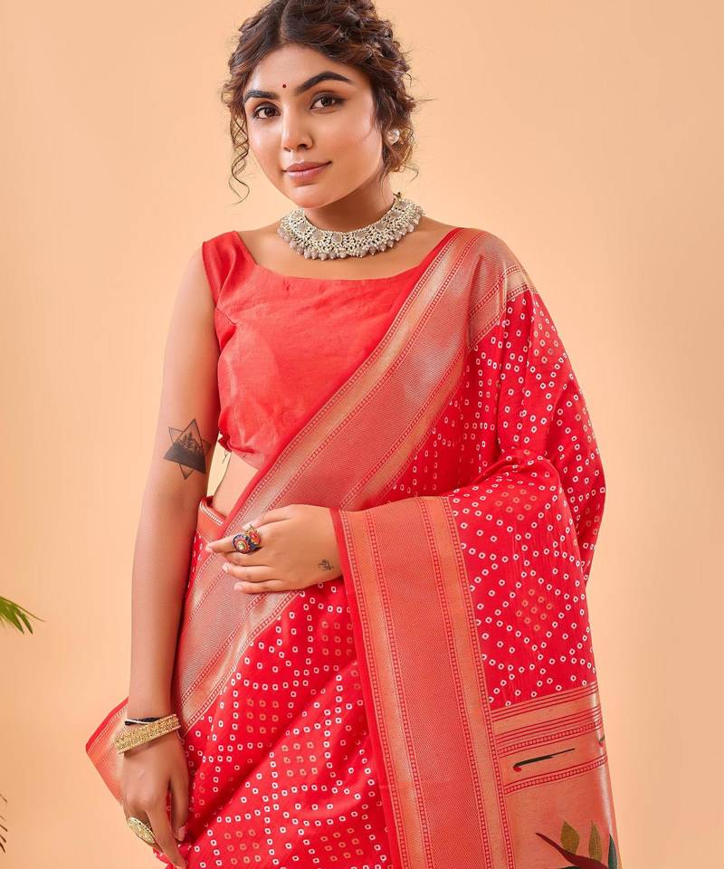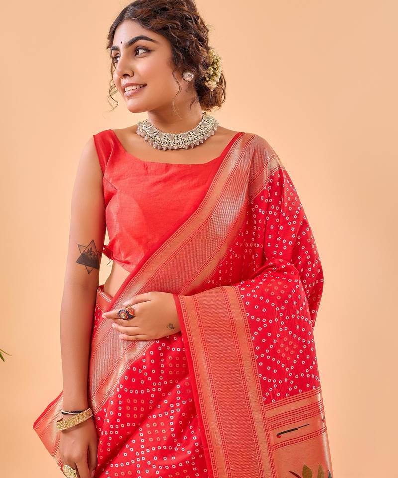 | • | Saree | : | Color- Red / Fabric- Art Silk |
