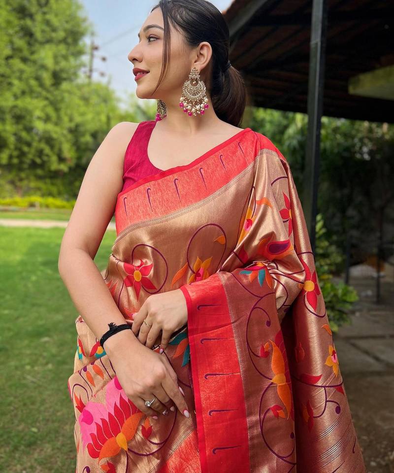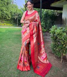 Red art silk woven saree