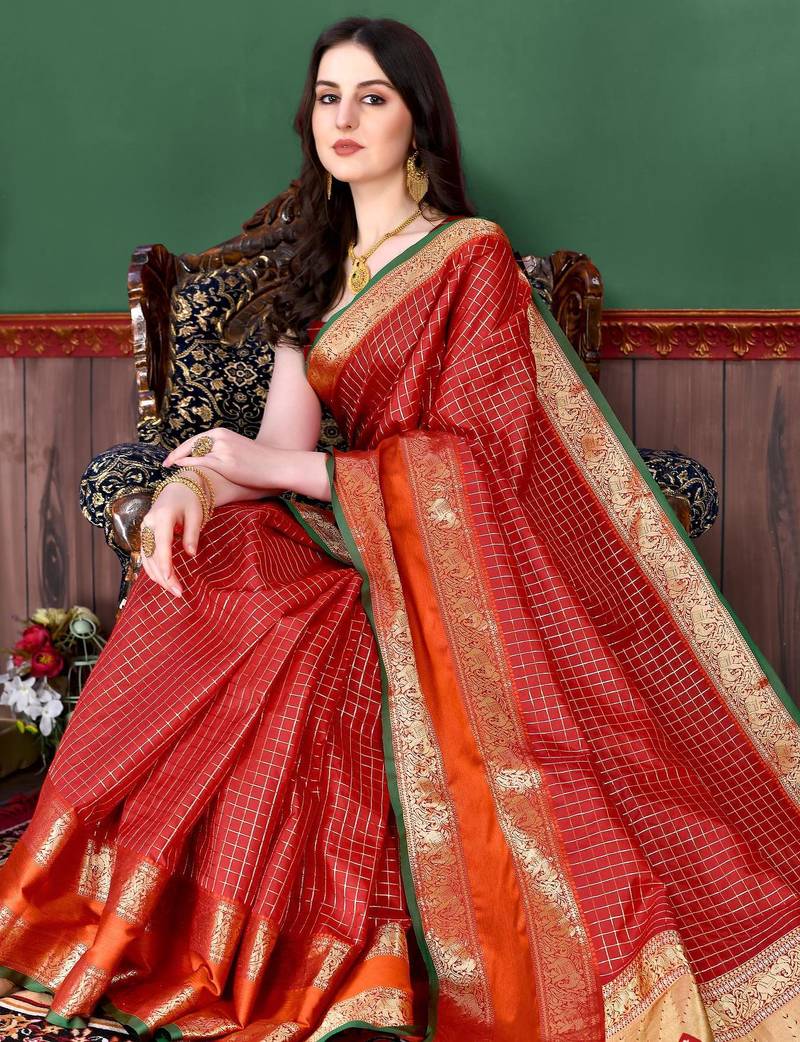 | Product Name | Red Elegant Art Silk Woven Saree With Rich Zari Border | |