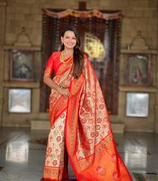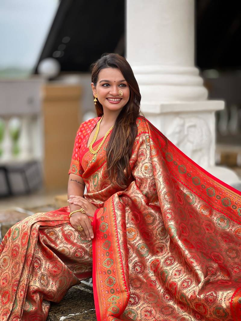 Red elegant art silk woven saree with rich zari border