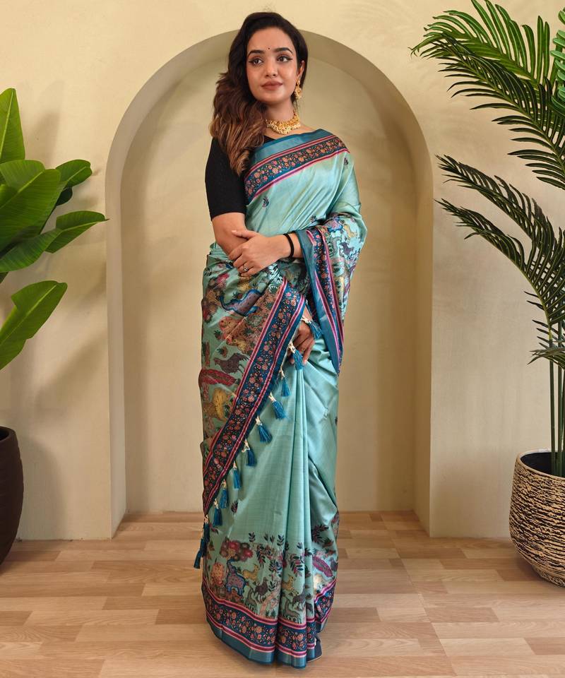 | • | Saree | : | Color- Sky Blue / Fabric- Art Silk |