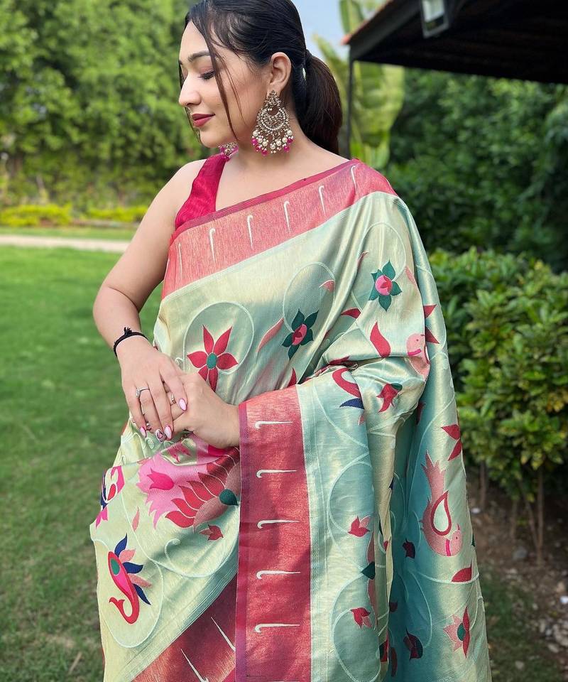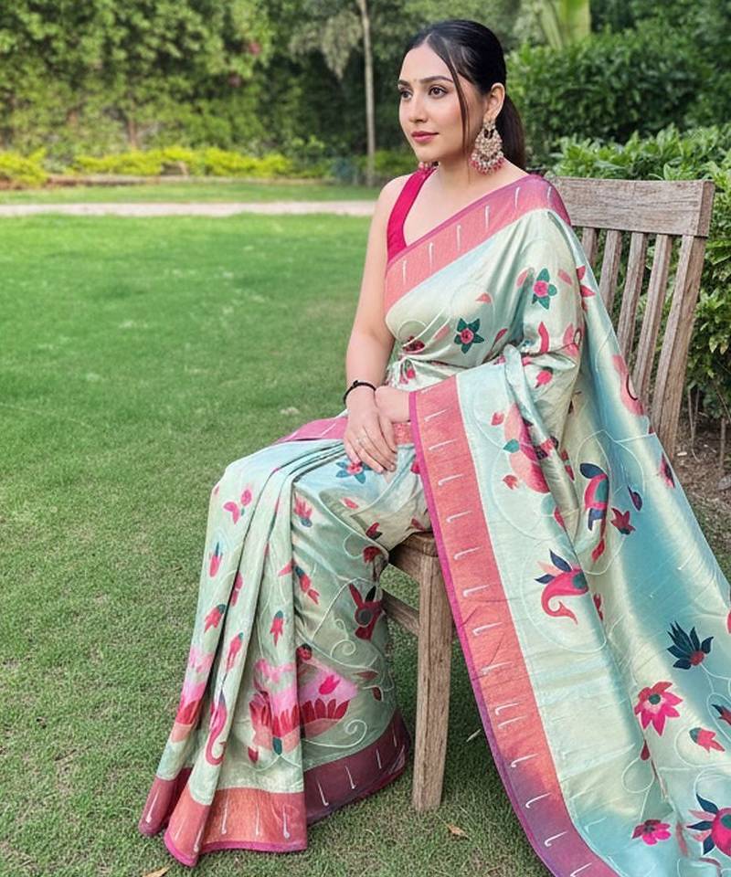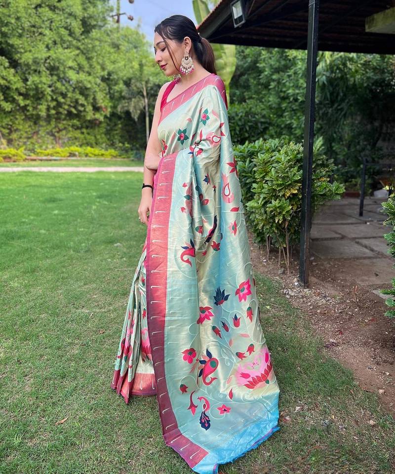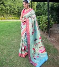 Sky blue art silk woven saree