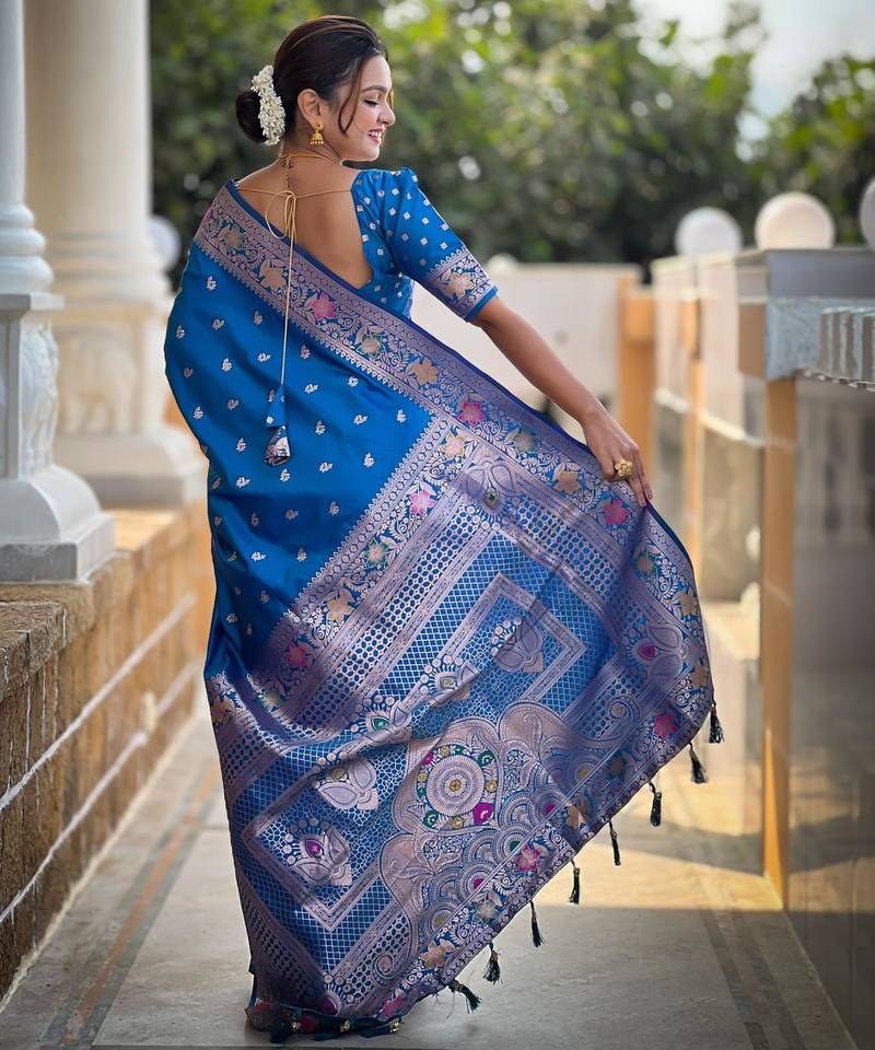 | Product Description | Soft Banarasi Silk Saree With Zari Weaving Meenakari Touchup Design All Over The Saree & Meenakari Weawing Rich Pallu With Meenakari Weawing Border & Tessels Attached At Pallu End. Blouse : Soft Silk Weawing Blouse Piece |