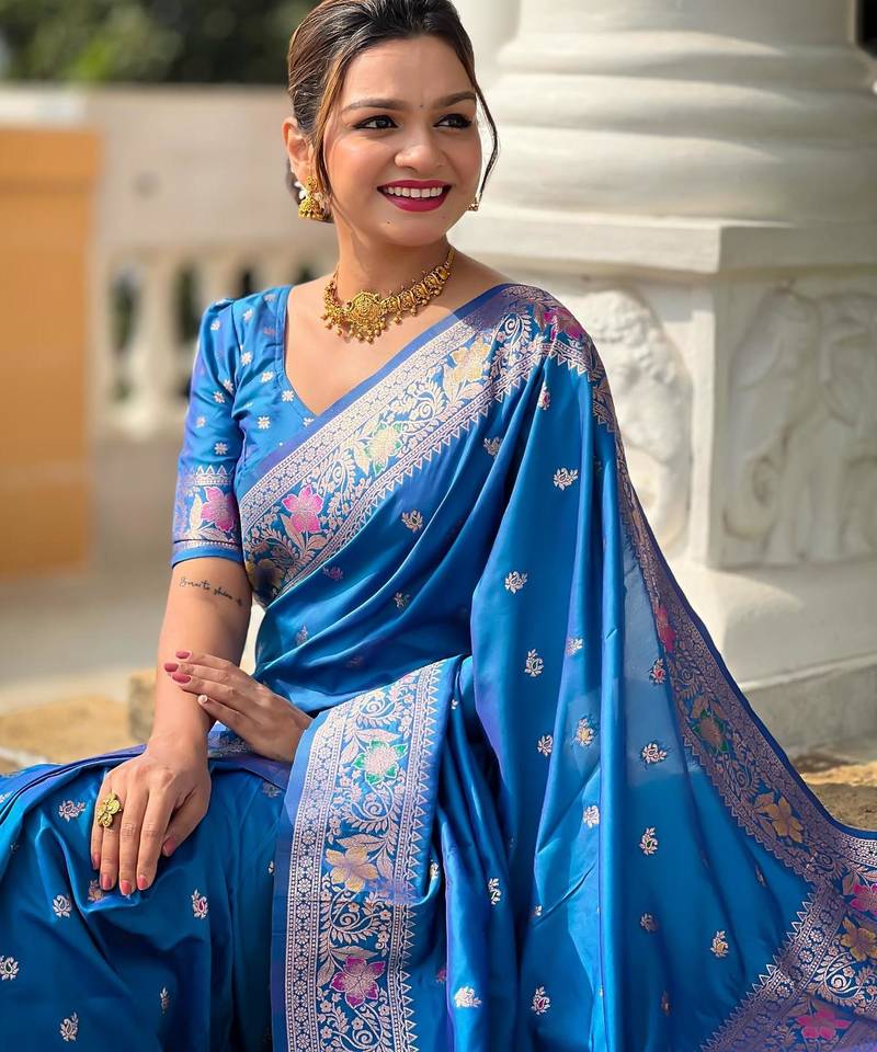 | Product Name | Sky Blue Elegant Art Silk Woven Saree With Rich Zari Border | |