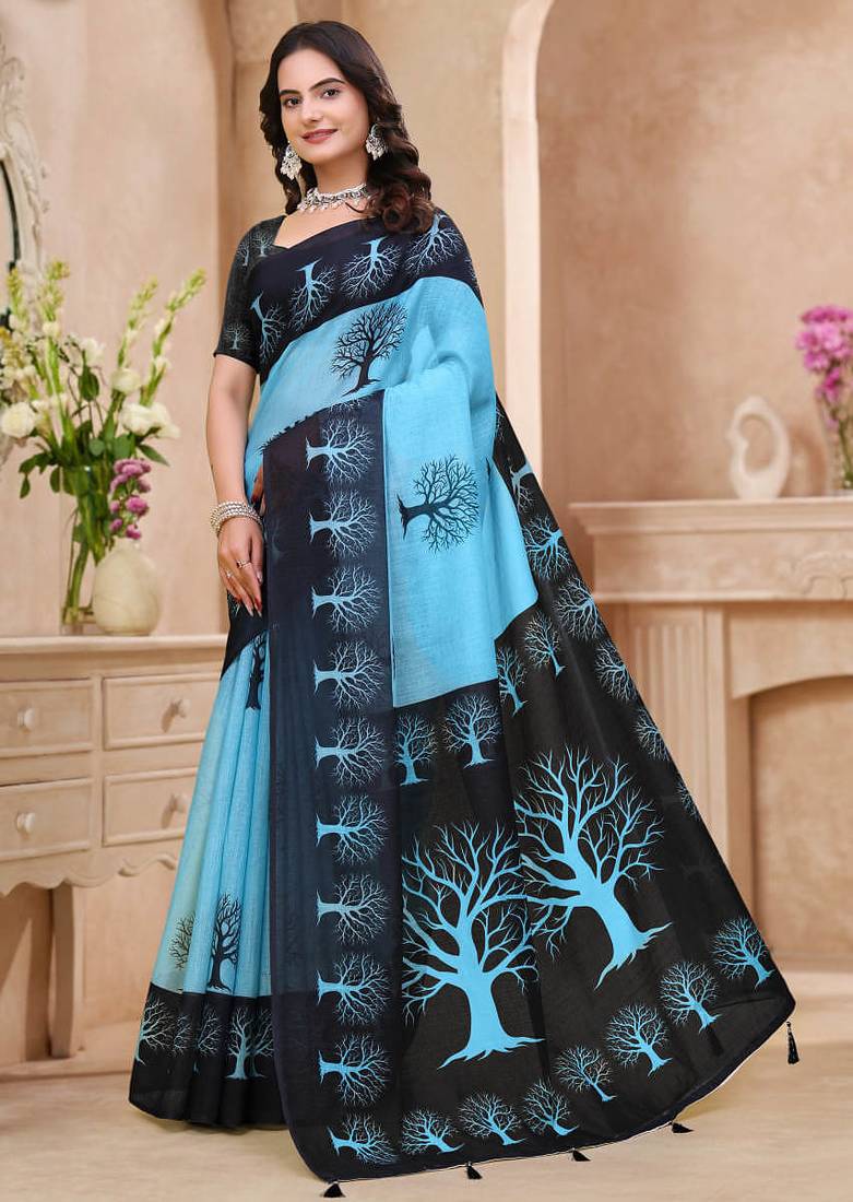 | Product Name | Sky Blue Printed Art Silk Designer Pallu Saree | |
