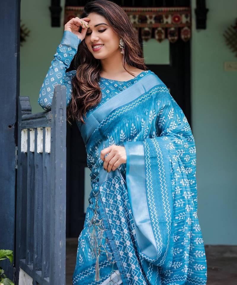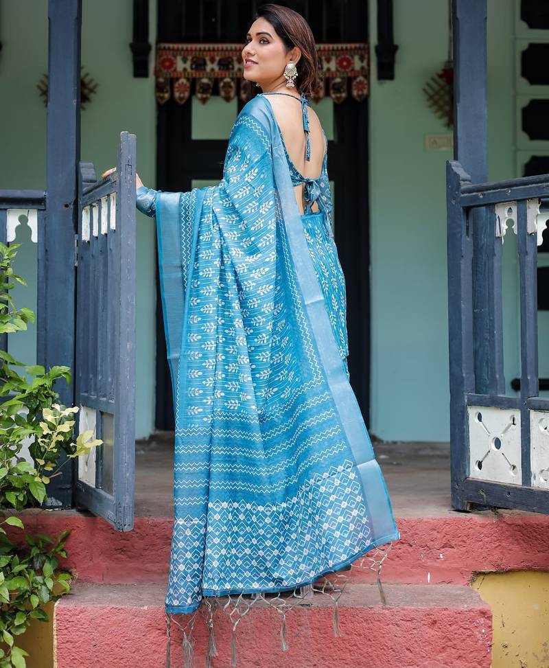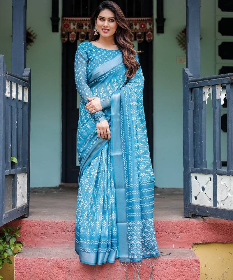 | Product Name | Sky Blue Printed Art Silk Designer Pallu Saree | |