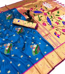 Sky blue soft silk pichwai paithani saree with lotus butta & double muniya border