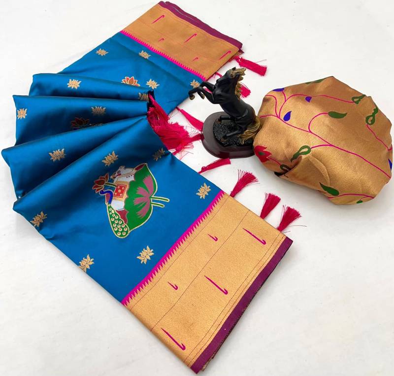| Product Name | Sky Blue Soft Silk Pichwai Paithani Saree With Lotus Butta & Double Muniya Border | |